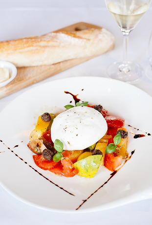 Stacked Tomato, Summer Vegetable, and Grilled Bread Salad
